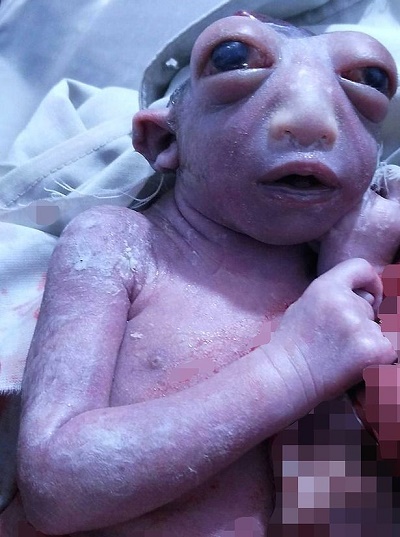 “The baby’s eyes were so large that she was born with them already open because her head had not formed properly.